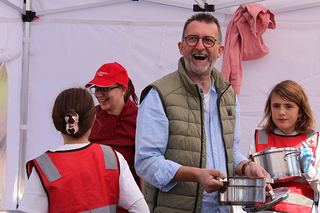 Diese in der Region einzigartige Aktion zieht bleibt auch außerhalb der Dorfgrenzen von Merchingen nicht unbemerkt. Am Mittag besuchte der Saarländische Innenminister Reinhold Jost und die Landtagsabgeordnete Martina Holzner das Geschehen auf dem Merchinger Dorfplatz. Auch Oberbürgermeister Markus Hoffeld überzeugte sich von dem Angebot des DRK. Die Politiker würdigten das ehrenamtliche Engagement des DRK mit einer Spende für die Kinder und Jugendarbeit. Innenminister Jost spendete 250€ während Martina Holzner und Landrätin Daniela Schlegel-Friedrich jeweils 50€ spendeten.
